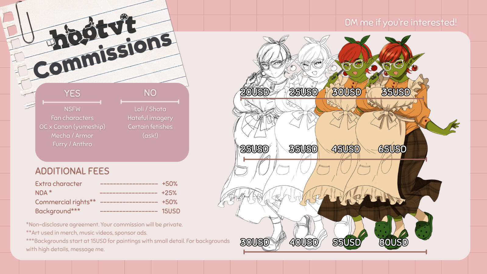 π - Commissions must be paid (either half or full, upfront) before I put you in my queue and start!