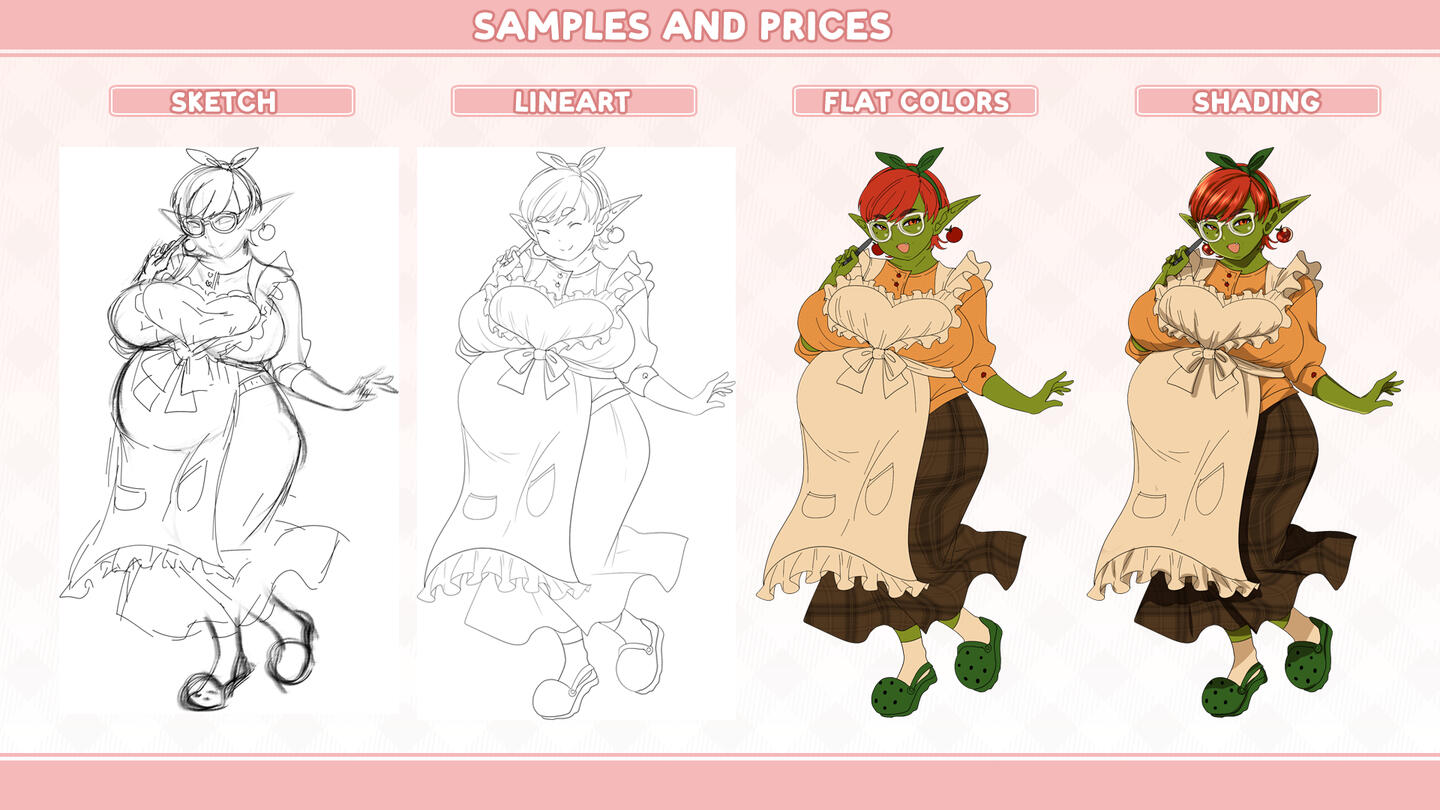 Reference/Description* of characters:*If you do not have a character design already made, I will be more than happy to design the character for you for a 50% fee! .π - Turnaround time to finish the art is up to 3 to 4 months, depending on my schedule and health.